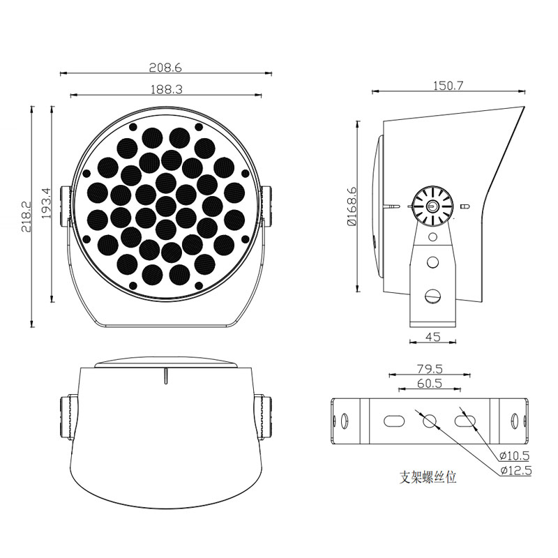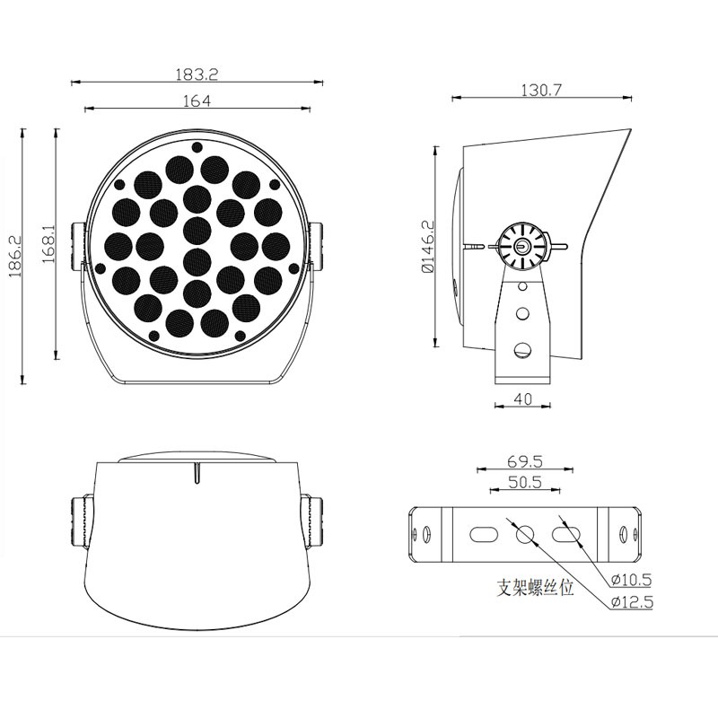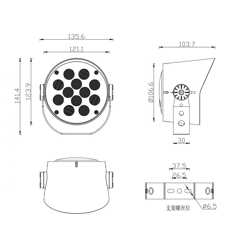 产品材质:压铸铝灯体+透镜一体面盖